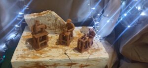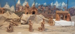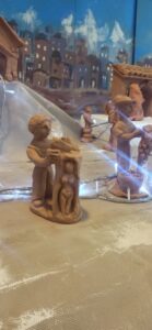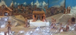 Anche quest’anno, nell’atrio della Scuola Media “L.Negrelli” è stato allestito “il Grande Presepe”, ormai una vecchia tradizione per la nostra scuola. Ritornano così i nostri personaggi per raccontarci una storia antica e sacra. A dare vita allo scenario sono le vecchie statuette d’argilla realizzate tra gli anni ‘70 e ‘80. Personaggi che con i loro mestieri animano le vie di una città vivace e laboriosa. C’è chi vendemmia, chi lavora il metallo, chi vende il pesce. Le lavandaie sono chine verso le tinozze, il falegname scolpisce un tronco, il contadino trascina l’aratro. Da lontano si intravedono i Re Magi che si avvicinano lentamente alla vecchia capanna.