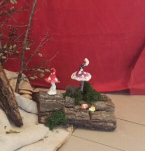 Se vi avvicinate al nostro piccolo villaggio potete incontrare Babbo Natale che scivola giù per la collina con la sua grande slitta artica, trasportata dalle sue renne forti e robuste. Dietro segue una piccola slitta, carica di regali e trascinata da una piccola renna. Sbucano di qua e di là misteriosi elfi, con i loro poteri magici e dalla bellezza soprannaturale quasi nascosta dal loro grande cappello a punta, dove si intravedono nasoni rossi e lunghe barbe. Portano fortuna ma attenzione alle loro marachelle.