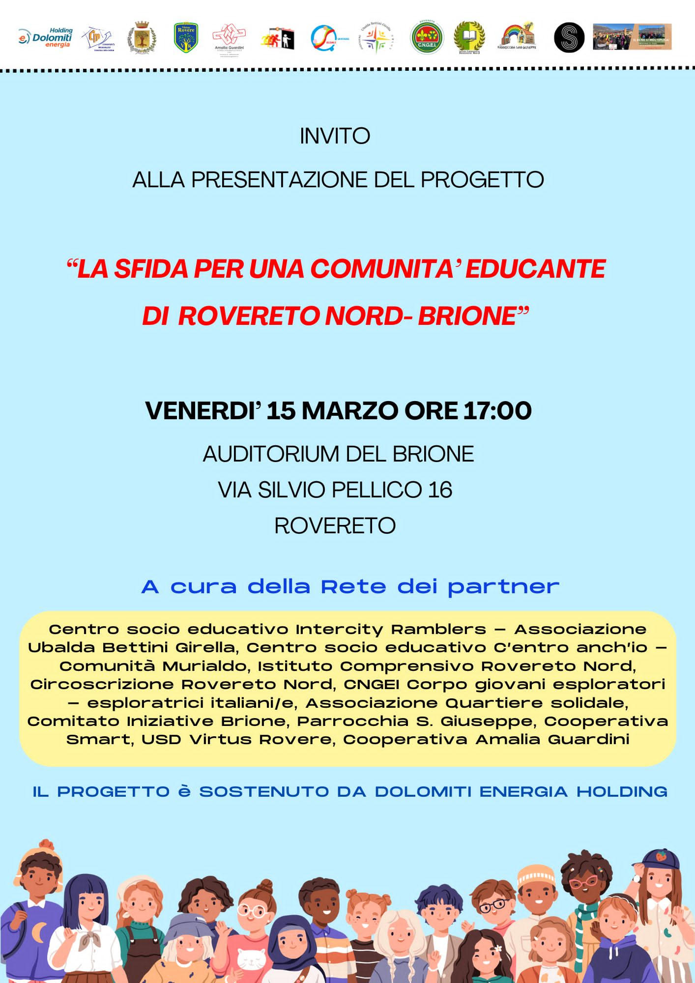Sostenuto da Dolomiti Energia Holding con un finanziamento di 40.000 euro, esso e finalizzato a promuovere interventi a vantaggio di minori, giovani, famiglie della Circoscrizione Nord di Rovereto, con particolare attenzione alle situazioni di difficoltà, disagio e povertà educativa.