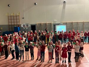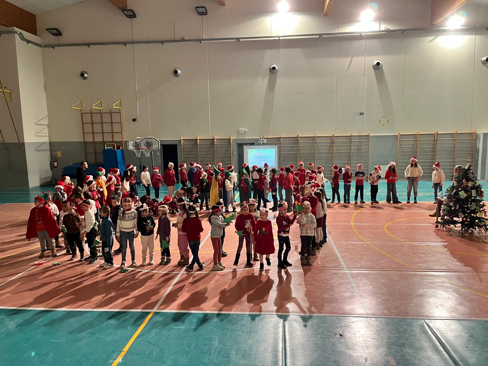 Lunedì 16 dicembre ha segnato l’apice di questa fervente attesa. La palestra della scuola, trasformata per l’occasione in un inedito e accogliente teatro, ha accolto un pubblico numeroso e caloroso, ansioso di condividere un momento di gioia e comunità. Ogni spazio era gremito, testimoniando il forte legame tra la scuola e le famiglie. Gli spettatori hanno avuto il piacere di assistere all’acclamata rappresentazione natalizia intitolata “Il Villaggio dei doni condivisi”, uno spettacolo che ha saputo incantare e coinvolgere il pubblico di ogni età. L’emozione si è fatta ancora più intensa durante l’esecuzione di canti natalizi classici e amati, come “Sarà Natale Se”, “Feliz Navidad”, “Oh Tannenbaum”, “Jingle Bell Rock” e “Christmas Makes Me Sing”, le cui melodie hanno fatto vibrare i cuori e invitato alcuni a danzare spontaneamente.